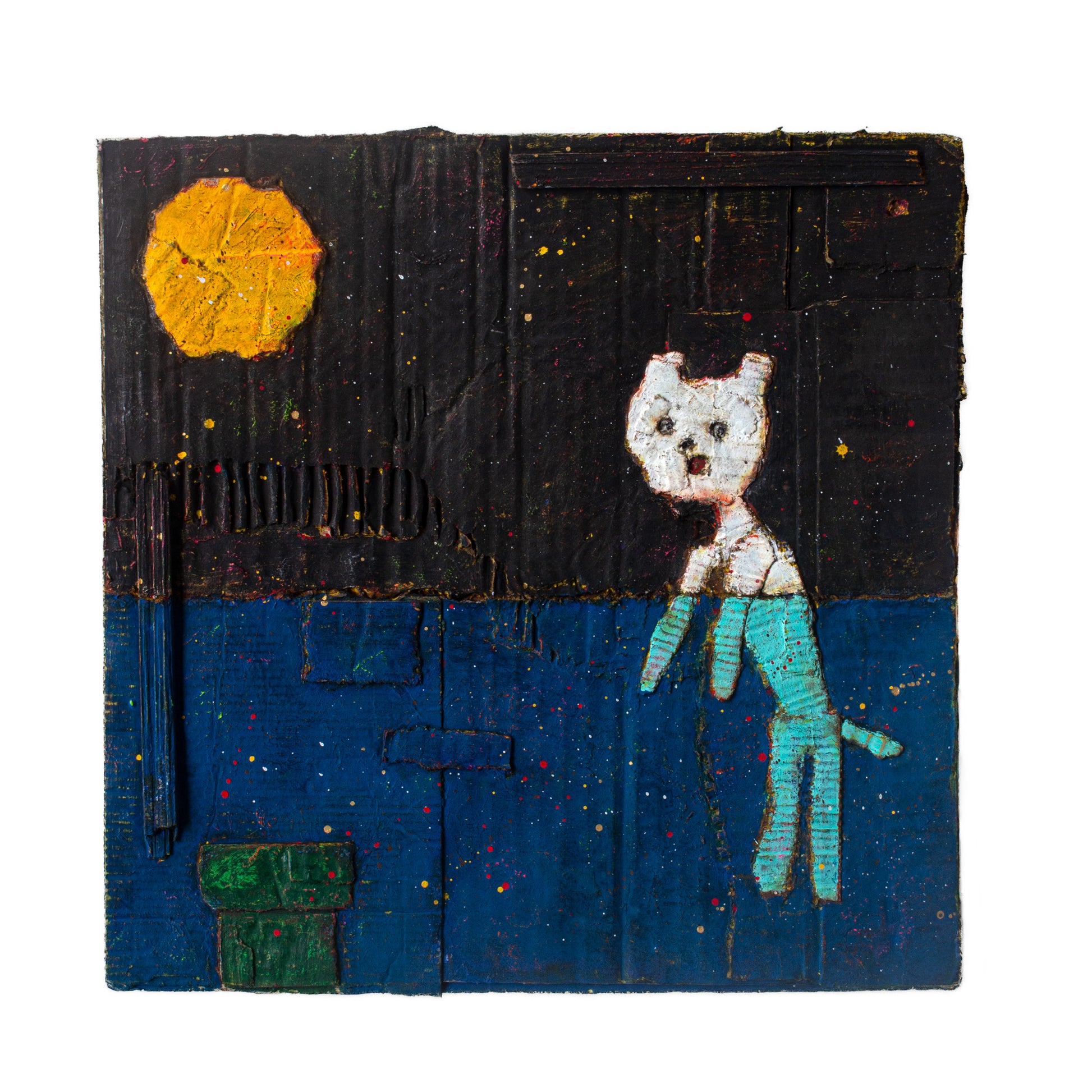 | ダンボールにアクリル絵の具 |